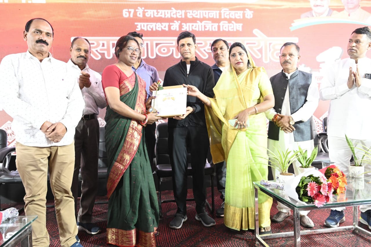 झोन क्रमांक 09 में मध्य प्रदेश स्थापना दिवस के अवसर पर झोन के कर्मचारियो का पार्षद रूपेश देवलिया, सोनीला मिमरोट, सेफु कुशवाह, अन्य पार्षद, झोनल अधिकारी जीडी सुतार, सीएसआई, एनजीओ हेड आयुष पाल द्वारा प्रशस्ति पत्र व उपहार देकर सम्मानित किया गया। साथ ही शहर के अन्य झोनल कार्यालयो पर महापौर परिषद सदस्य, पार्षदगण, निगम अधिकारियो की उपस्थिति में सफाई मित्र व अन्य सहयोग संस्थाओ का भी सम्मान कर स्वागत किया गया।